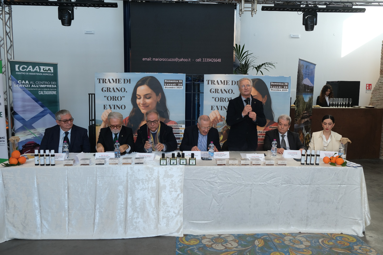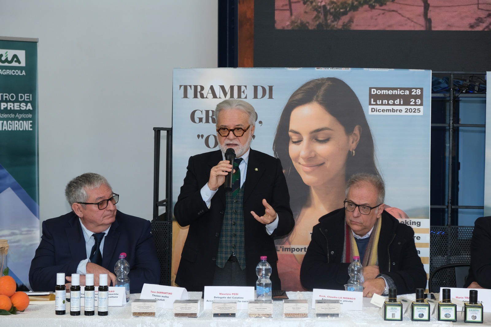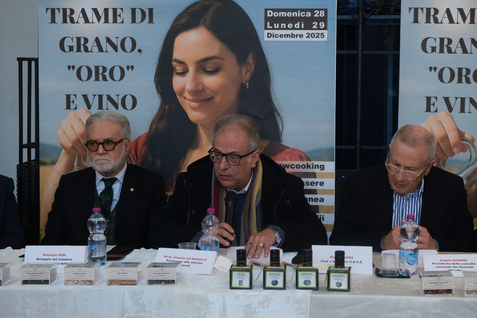 – el Presidente de la Pro Loco de Caltagirone, Dr. Nicolò Parrinelli; – el Dr. Maurizio Di Falco, responsable de la restauración Spazio Hoffmann; – Calogero Giancona, Director provincial de la C.I.A.; – el Vicepresidente nacional de Città dell’Olio, Dr. Giosuè Catania; – el Dr. Giuseppe Puleo, Director de la Estación Consorcial Experimental de Cultivo de Cereales para Sicilia; – el Dr. Maurizio Pedi, delegado para el Calatino de la Academia Italiana de la Cocina; – Francesca Nicolosi por la empresa agrícola Cinque Sorelle de Ramacca; – Tano Sammartino por el Molino Crisafulli;