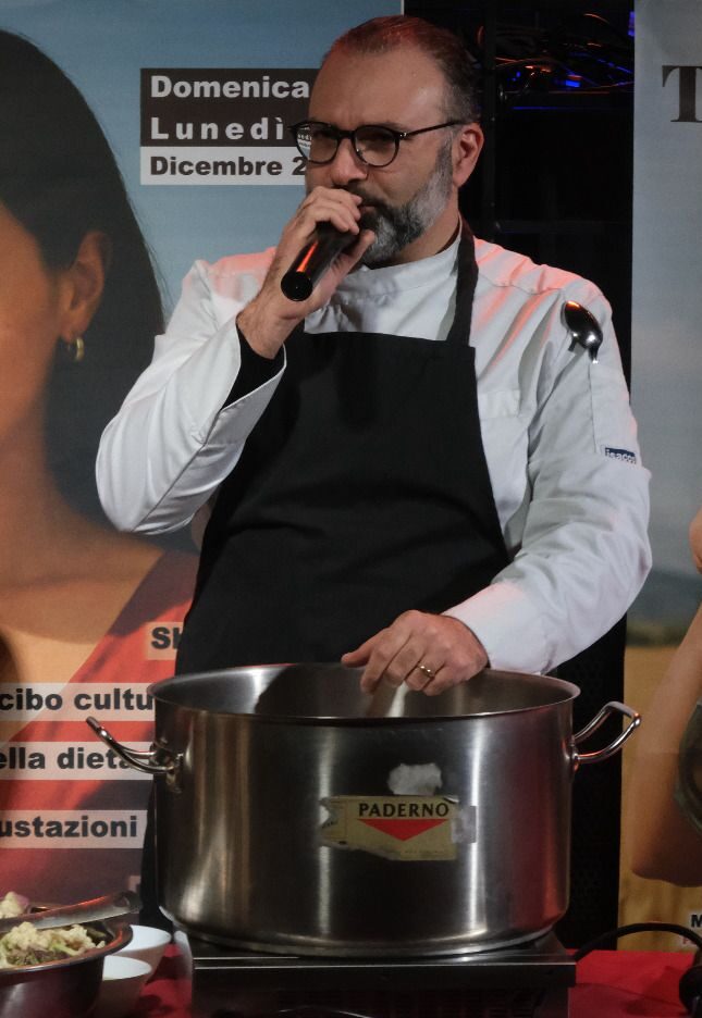 Durante la preparación del cuturro, plato emblemático de la tradición campesina siciliana, Mario Traina supo conjugar grandes capacidades culinarias y notables dotes oratorias, transformando el show cooking en un auténtico relato colectivo. Con gestos seguros, competencia técnica y un profundo conocimiento de las materias primas, el chef guió al público a través de cada fase de la preparación, explicando los orígenes, los significados y las variantes de una receta arraigada en la historia rural de la isla.